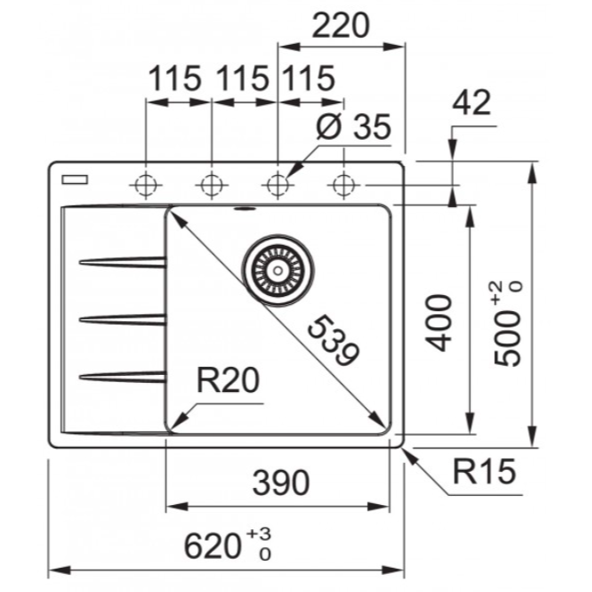 Rozměr dřezové nádoby: 390 x 400 x 200 mm
