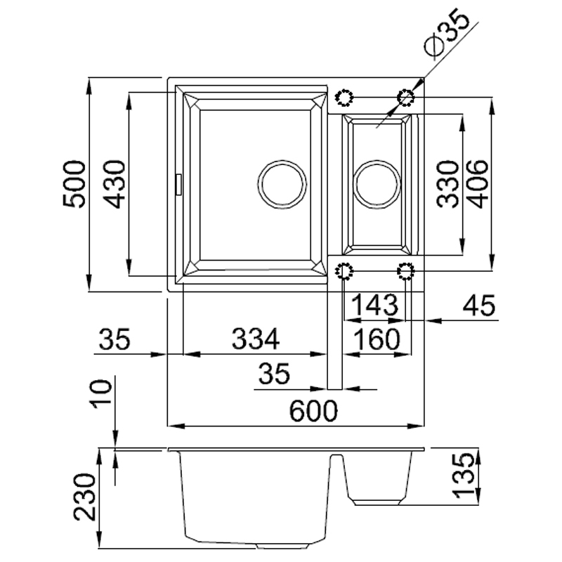 Jednodřez s vaničkou ELLECI EASY 150 G40
