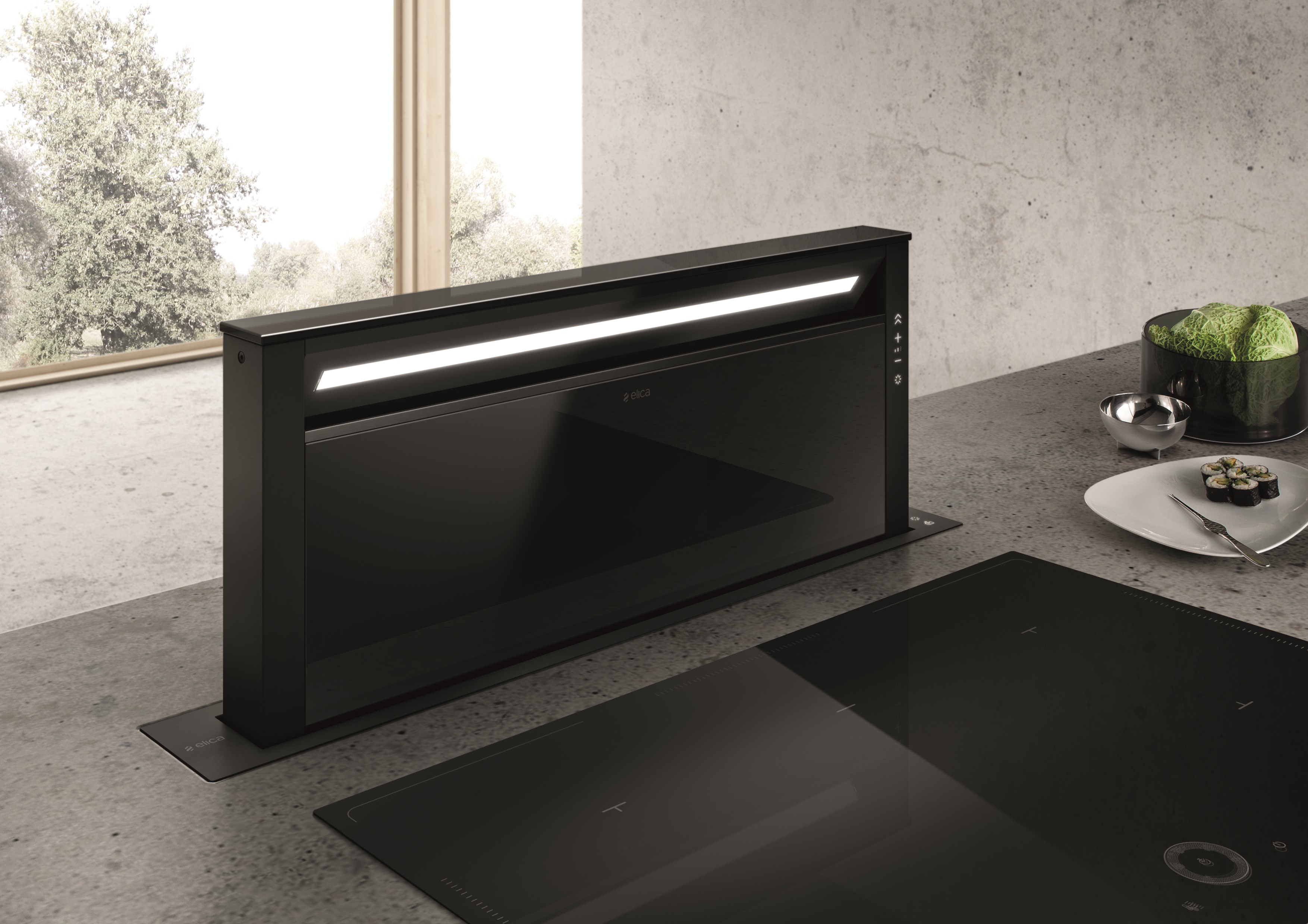 Maximální svoboda stylu designu, prostoru a ovládání odsavače par, který se vysune z pracovní kuchyňské desky pouze pokud je opravdu potřebný.
