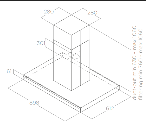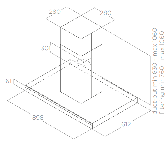 Odsavač par (digestoř) je opatřen osvětlením STRIP LED s výkonem 2x7W a teplotou 3000K.