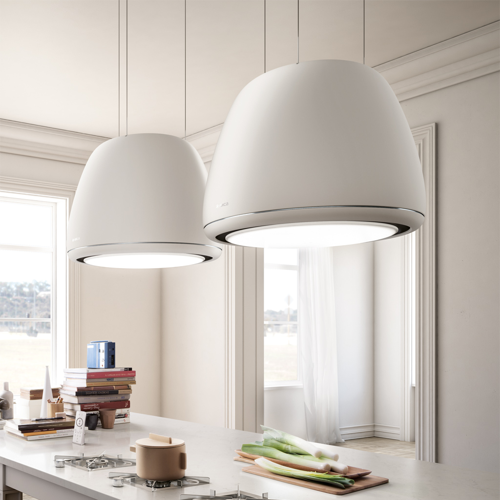 Tvar produktů byl navržen tak, aby vyjadřoval celistvost. Spojené linky, které na sebe navazují, tvoří jednolité těleso, jenž je základem energie a světla. Řada odsavačů par se zapuštěným světlem byla zdokonalena novým designem a výrazným zlepšením výkonu pomocí zvětšení obvodu sání.