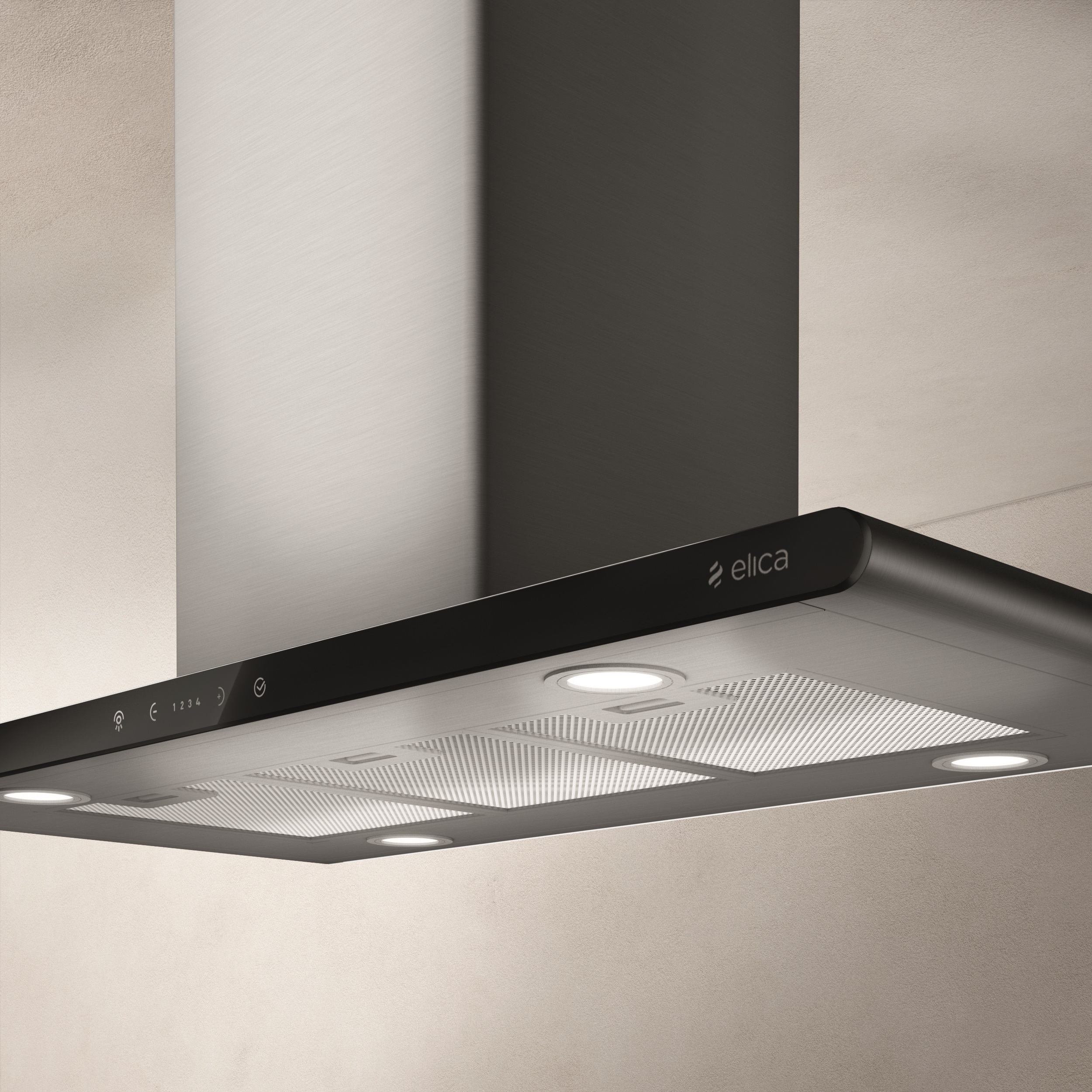 ELICA GALAXY je ostrůvkový odsavač par (digestoř) z nerezové oceli doplněný o černé sklo. Odsavač par s výkonem 288-559 m3/h a v intenzivním výkonu dokonce 647 m3/h, mile překvapí hlučností pouze 52-73 db(A) a dotykovým ovládáním.