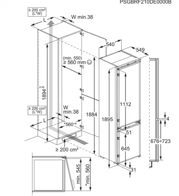 Vestavné rozměry (mm): 1894 x 560 x 550