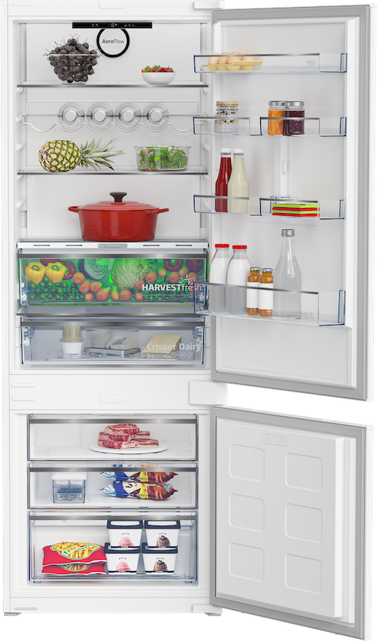AeroFlow™ je šetrná cirkulace chladného vzduchu v prostoru lednice, která uchová jídlo déle čerstvé. Chladný vzduch o stálé teplotě obklopuje potraviny v celém prostoru lednice rovnoměrně a teplota mezi jednotlivými policemi se tak neliší jako běžně. Navíc vzduch nefouká přímo na potraviny, takže neosychají. Potraviny díky AeroFlow™ vydrží déle, uchovávají si svoji chuť i živiny.Typ Vestavná