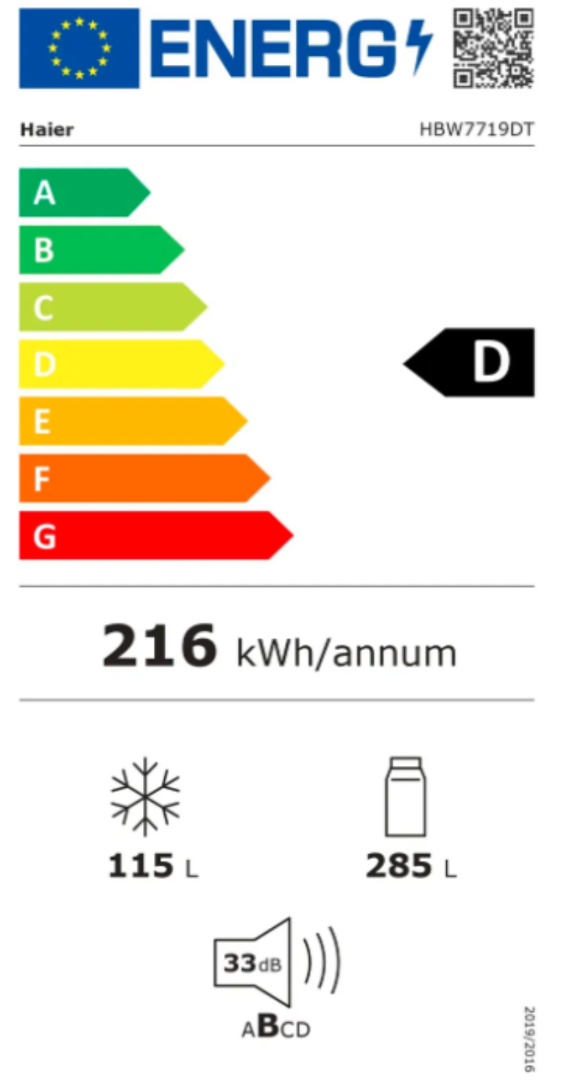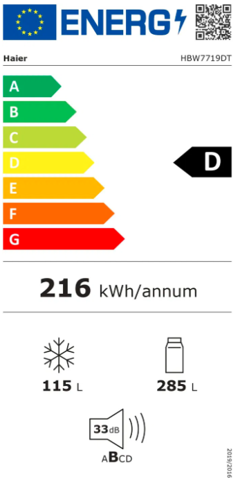 Vestavná lednice s mrazákem HAIER HBW7719DT ID Series 6 perfektně poslouží početným rodinám a zapadne do prostorné kuchyně. Chladicí část lednice nabízí celkem 285 l, takový prostor uspokojí běžnou rodinu s několika dětmi. Pro uspořádání potravin má ve výbavě 4 police. Mrazicí prostor má nadstandardní objem 115 l. Mrazák tvoří celkem 3 přihrádky. Rozměry lednice HAIER činí 193,5 × 69 × 55 cm (V׊×H). Hmotnost lednice činí 102 kg.