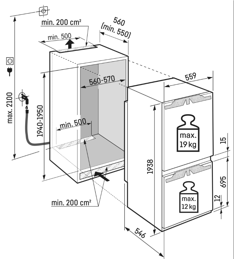 Rozměry výklenku výška/šířka/hloubka        194 - 195 / 56 - 57 / 55,0 cm