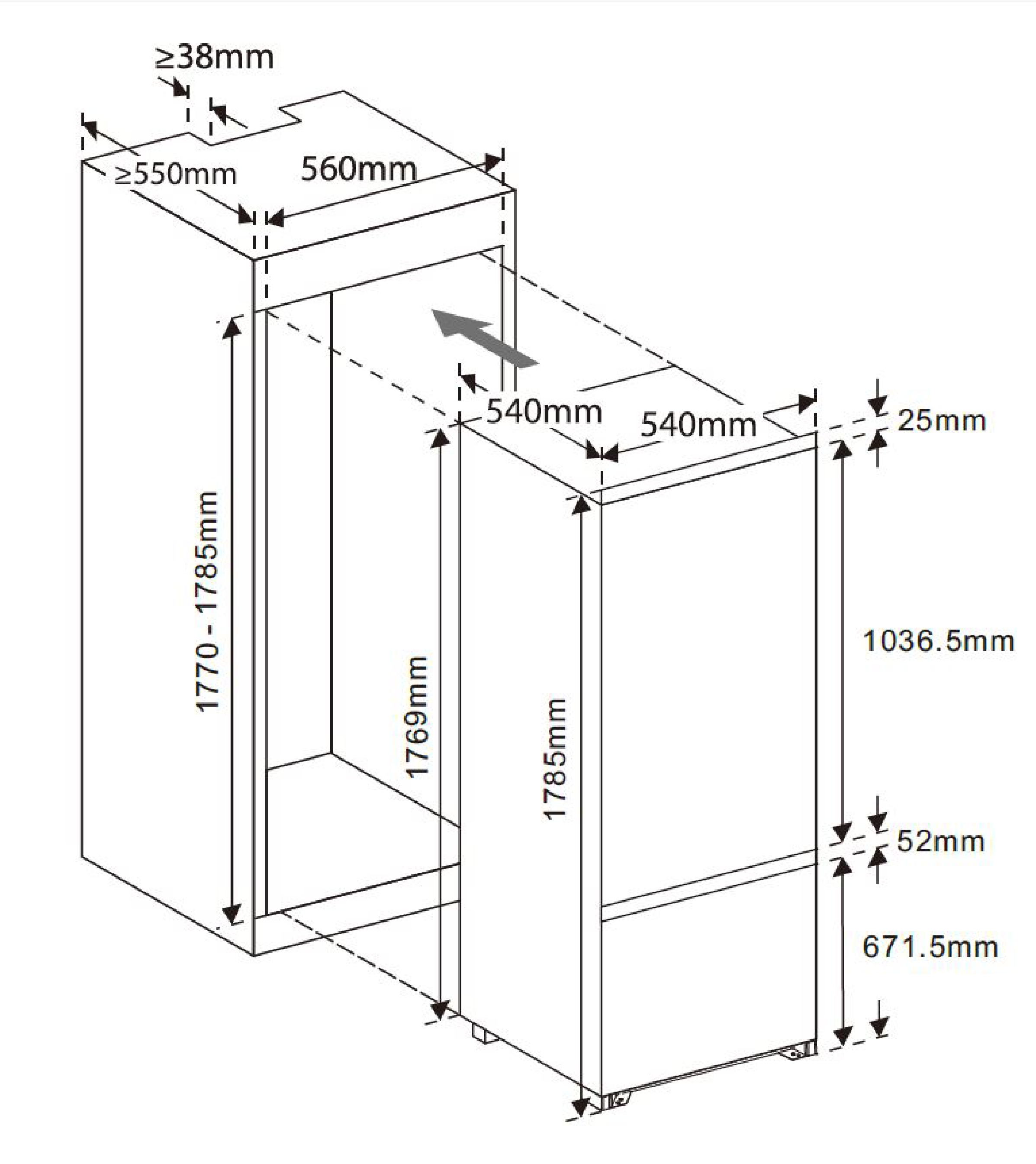 Výška pro vestavbu cm 177