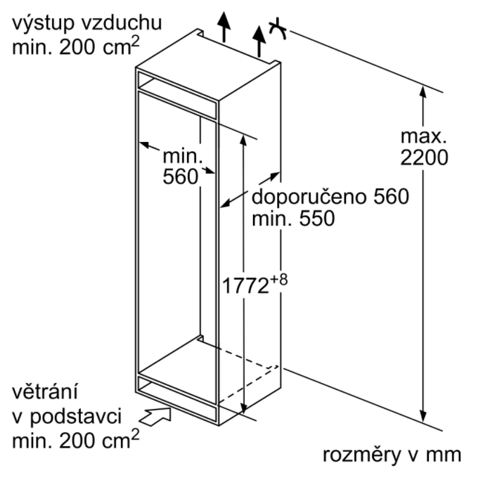 Minimální šířka niky 560 mm