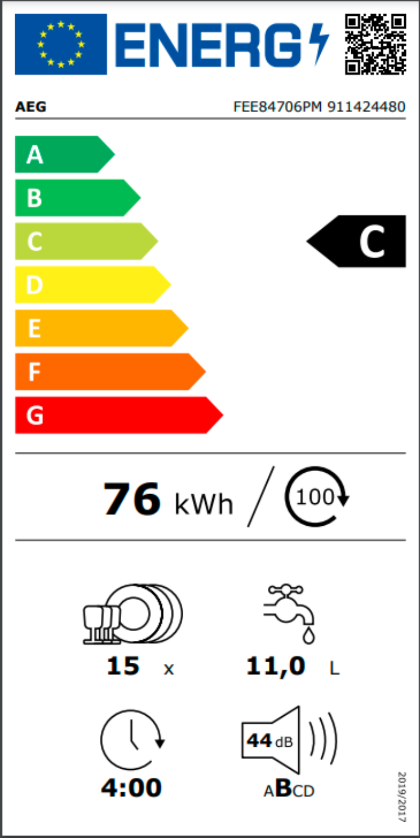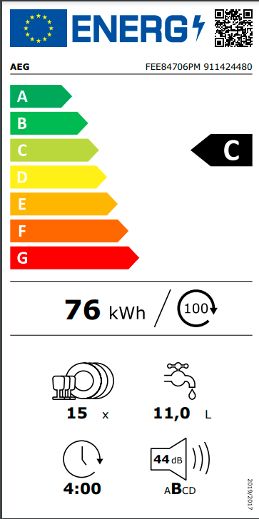 Kapacita mytí: 15: Podle normy IEC pro sadu nádobí. Jednou sadou nádobí je podle této normy: talíř, hluboký talíř, dezertní talíř, sklenice, čajový šálek s podšálkem, nůž, vidlička, polévková lžíce, dezertní lžíce a lžička.
