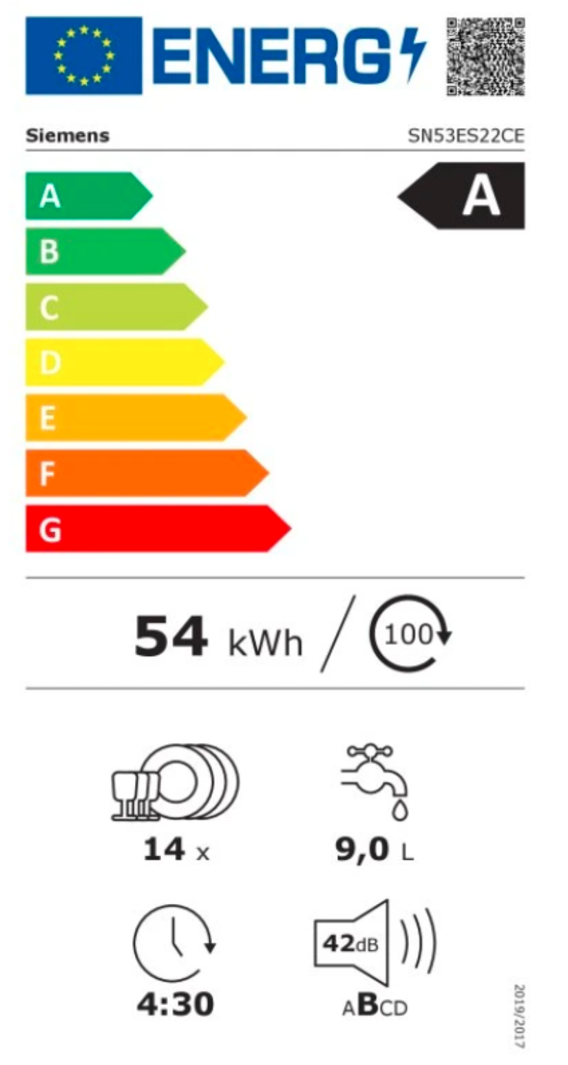 Výkon a spotřeba třída energetické účinnosti:¹ A energie² / voda³: 54 kWh / 9 l kapacita: 14 sad nádobí doba trvání programu:⁴ 4:30 h:min hladina hluku: 42 dB(A) re 1 pW třída ...Více informací