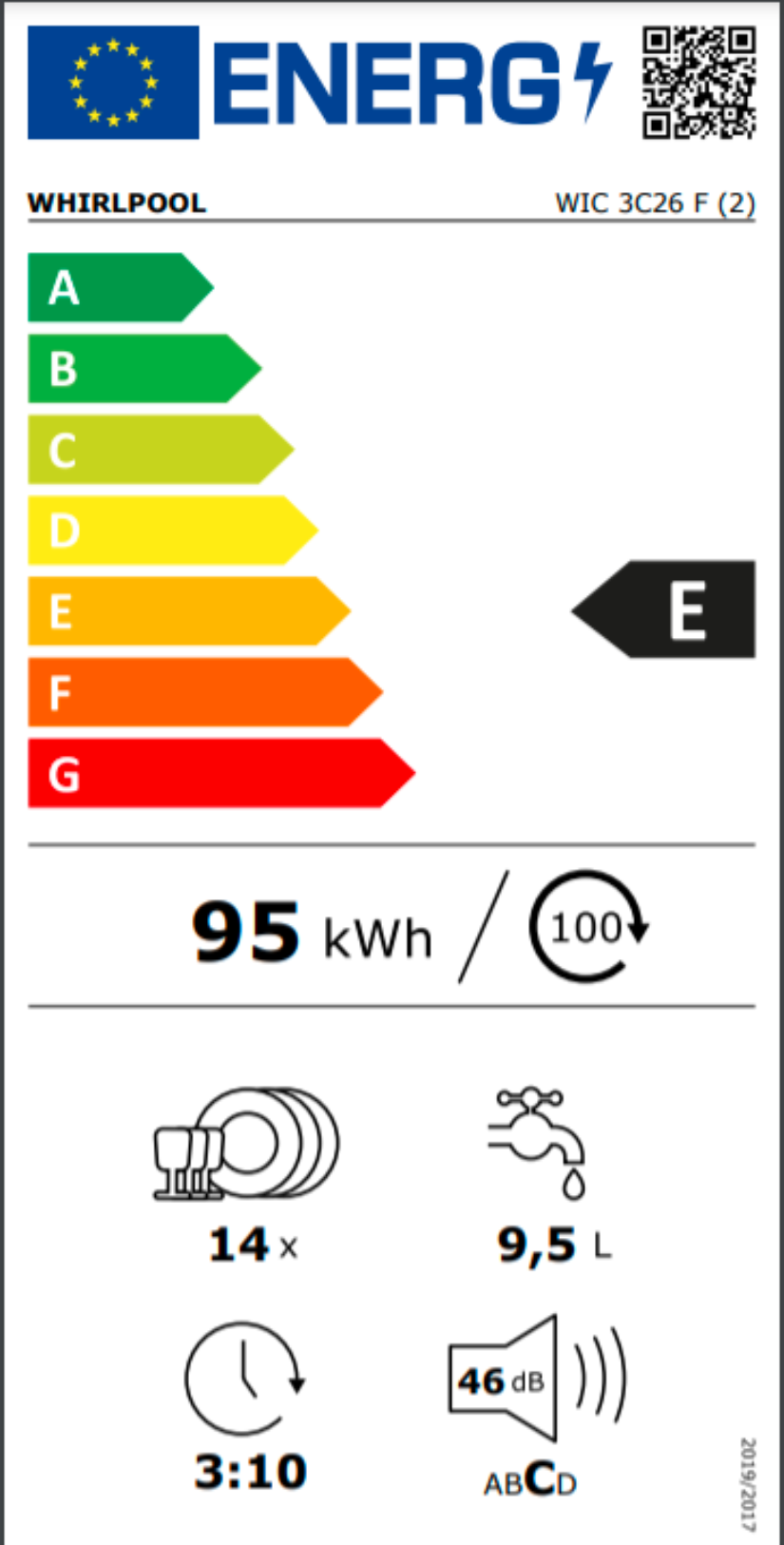 Myčka nádobí WIC 3C26 F v energetické třídě E.