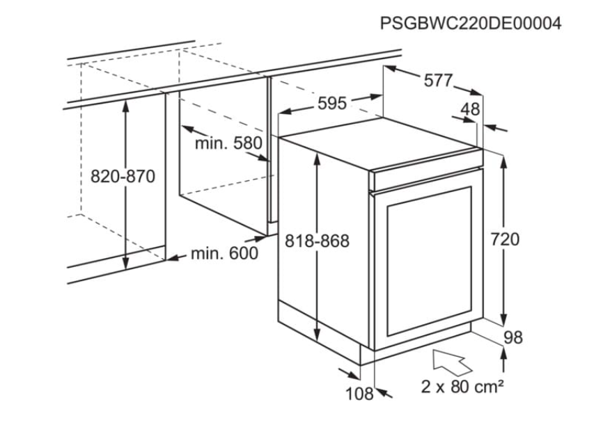Rozměry spotřebiče VxŠxH (mm): 818 x 595 x 577