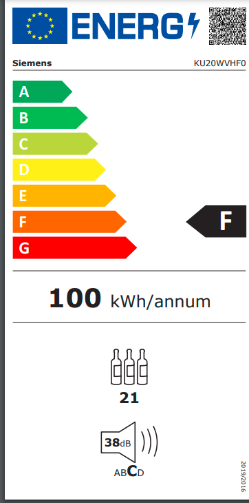 iQ500, Chladnička na víno se skleněnými dveřmi, 82 x 30 cm KU20WVHF0 Výkon a spotřeba Třída spotřeby energie: F Čistý celkový objem : 58 l Čistý objem chladící části : 58 l Či ...Více informací